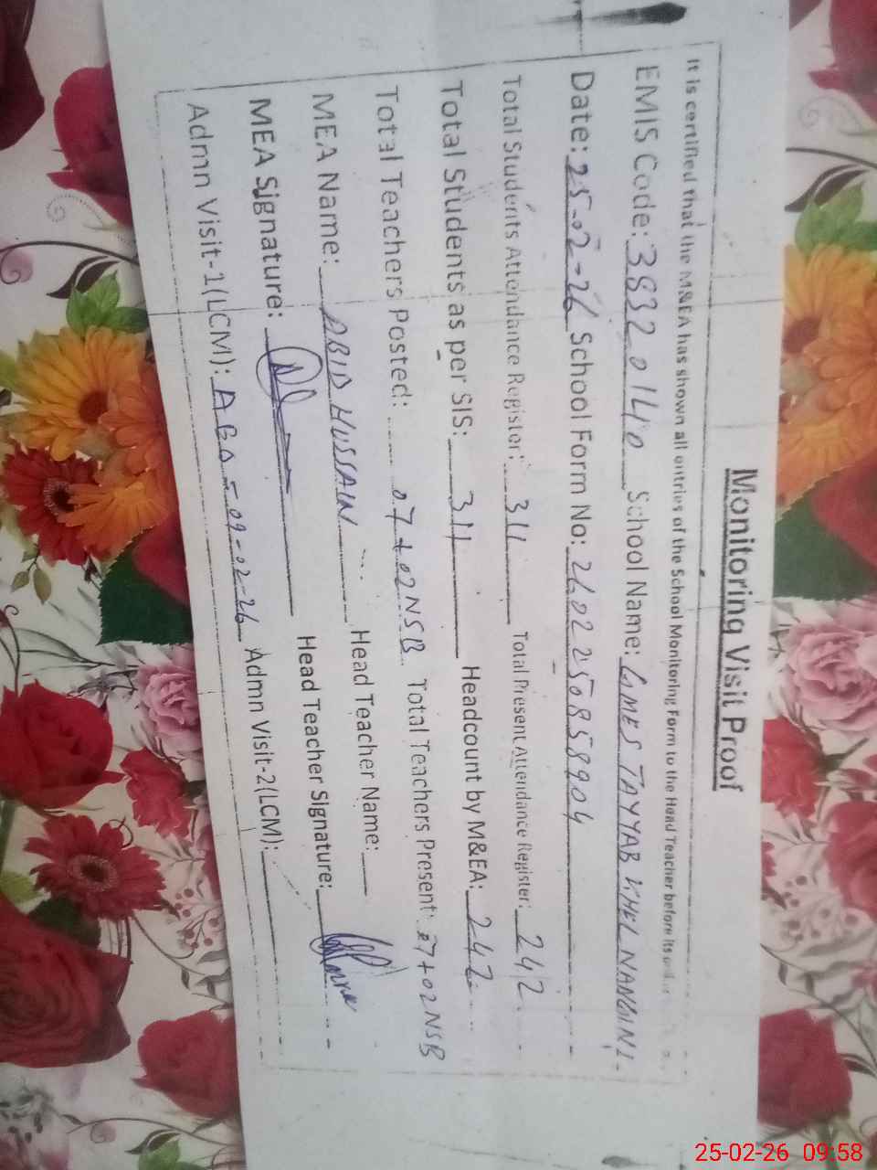 | EMIS Code: 38320140 | Name of School: GMES TAYYAB KHEL NANGINI | |||