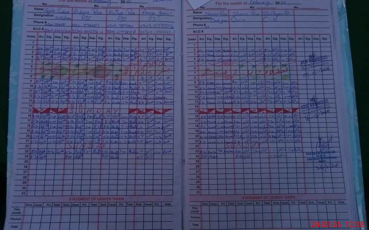 | CNIC | Full Name | Designation | R/C | Absence During Last Calender Month |