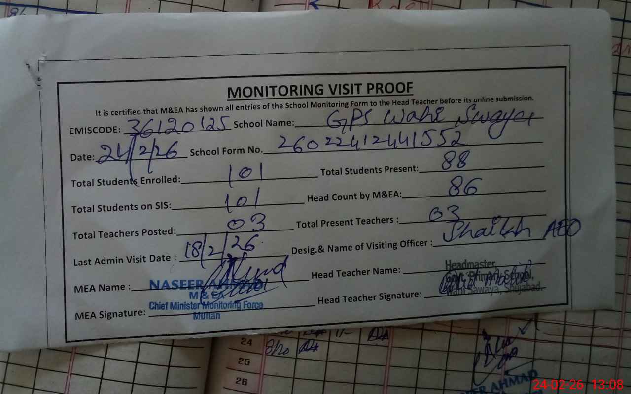 | EMIS Code: 36120125 | Name of School: GPS WAHI SAWAYA P/O RAJARAM SHUJA ABAD | |||