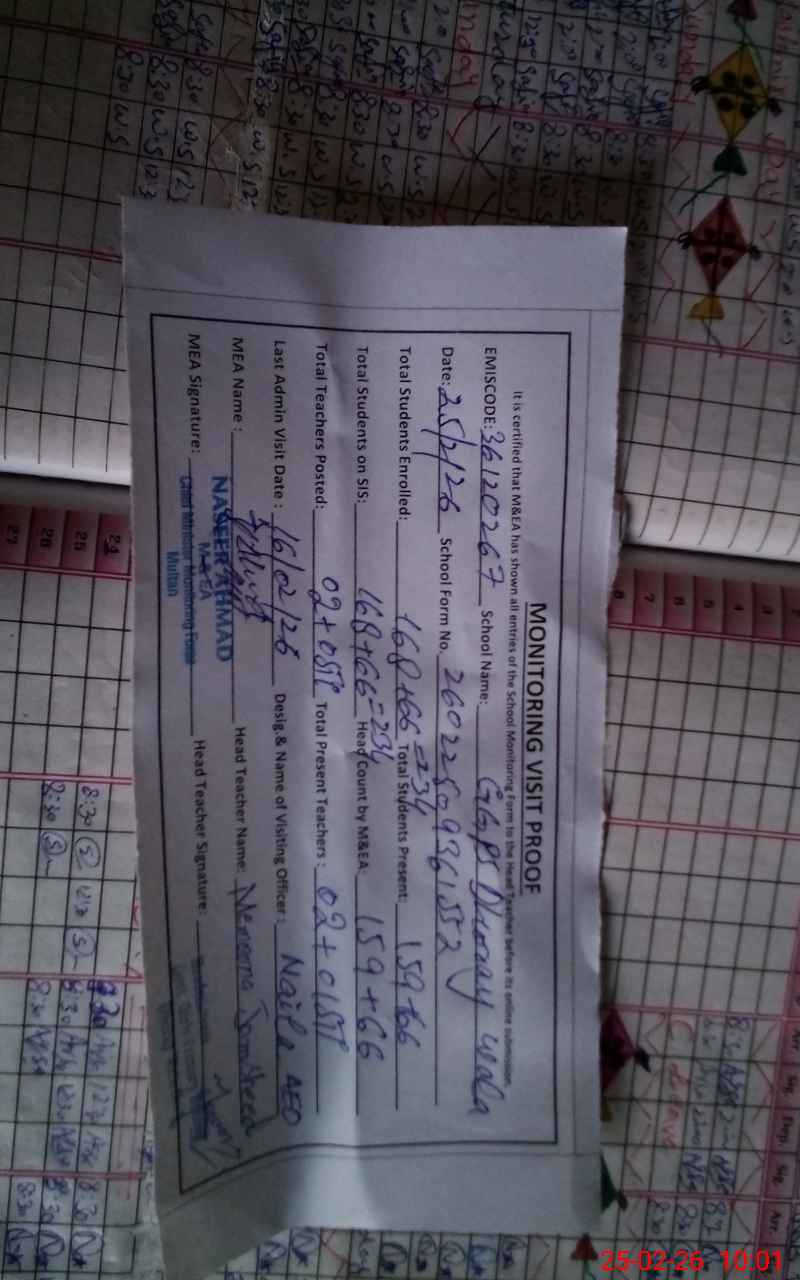 | EMIS Code: 36120267 | Name of School: GGPS DHORAY WALA NO.1 SHUJABAD | |||