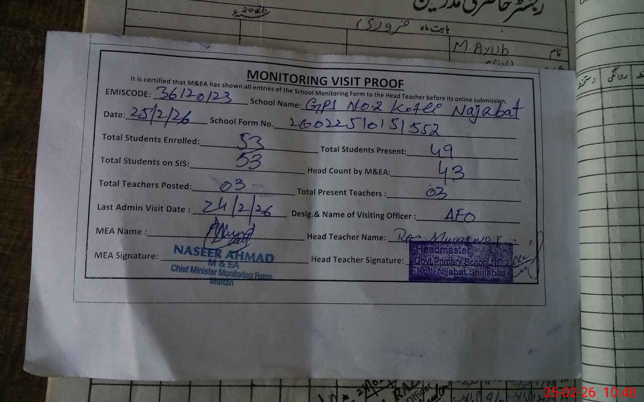 | EMIS Code: 36120123 | Name of School: GPS NO. 2 KOTLI NIJABAT | |||