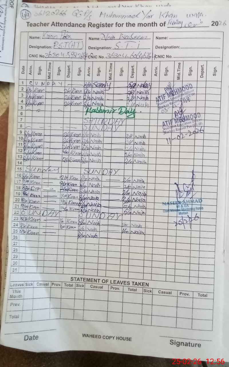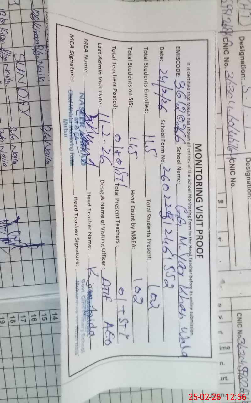 | EMIS Code: 36120266 | Name of School: GGPS MUHAMAD YAR KHAN WALA SHUJABAD | |||