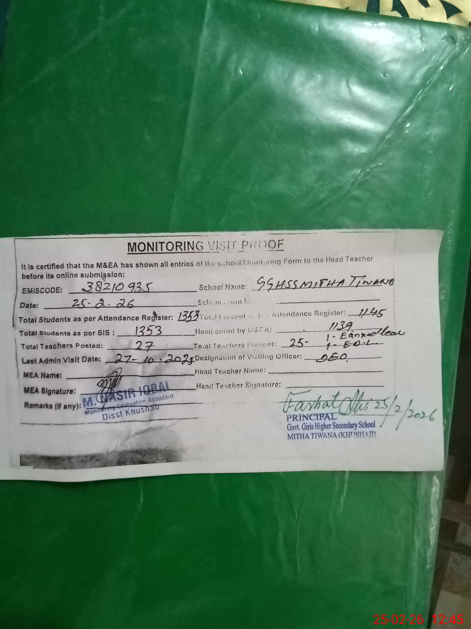 | EMIS Code: 38210935 | Name of School: GGHSS MITHA TIWANA | |||