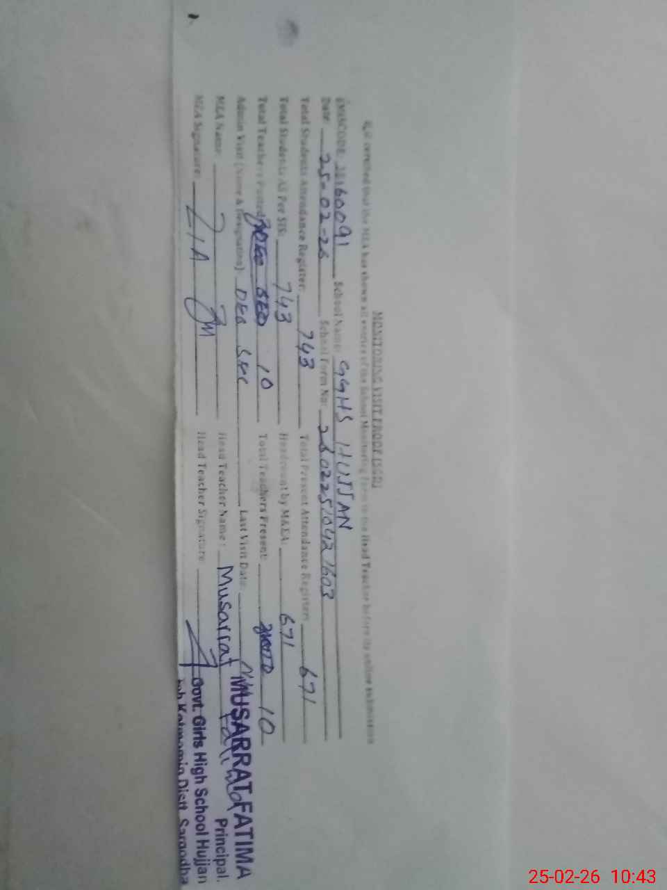 | Name: MU**** FA**** Designation: (School Headmaster's/Headmistress's) SSE Phone/Cell Number: 03**** |