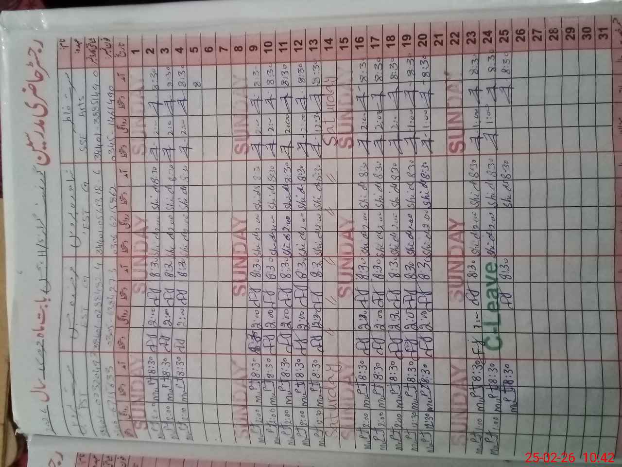 | CNIC | Full Name | Designation | R/C | Absence During Last Calender Month |