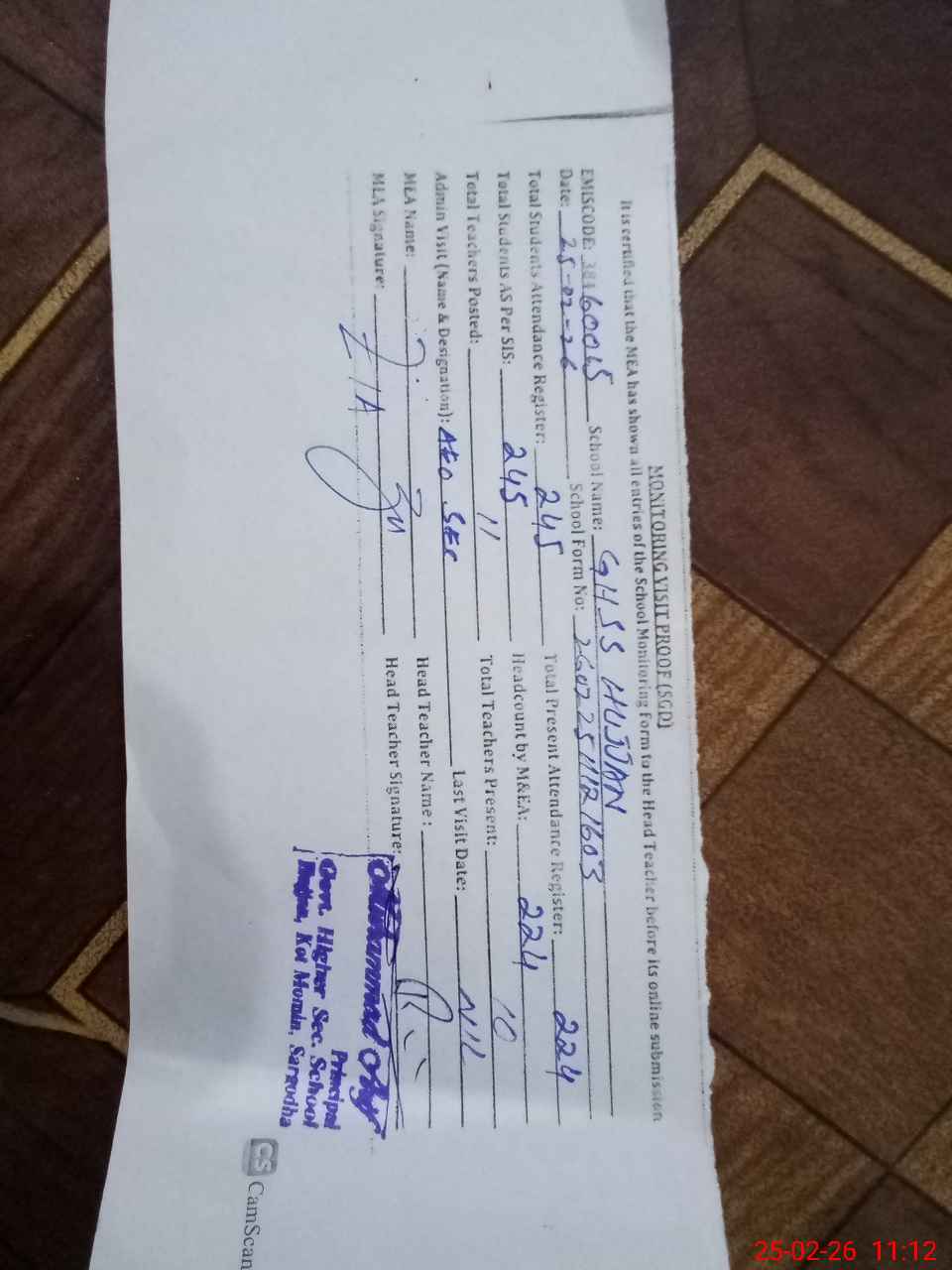 | Certified that this School was Inspected by the Undersigned MEA/DMO Today and the Information Stated Above is as Per Record. | |||||
