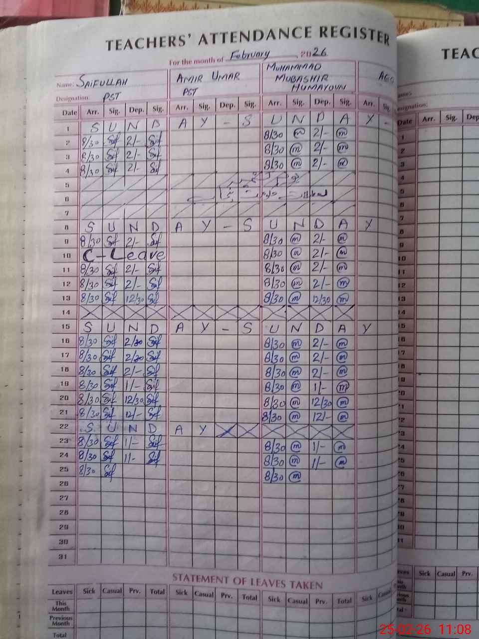 | Name: Sa**** Ul**** Designation: (School Headmaster's/Headmistress's) PST Phone/Cell Number: 03**** |