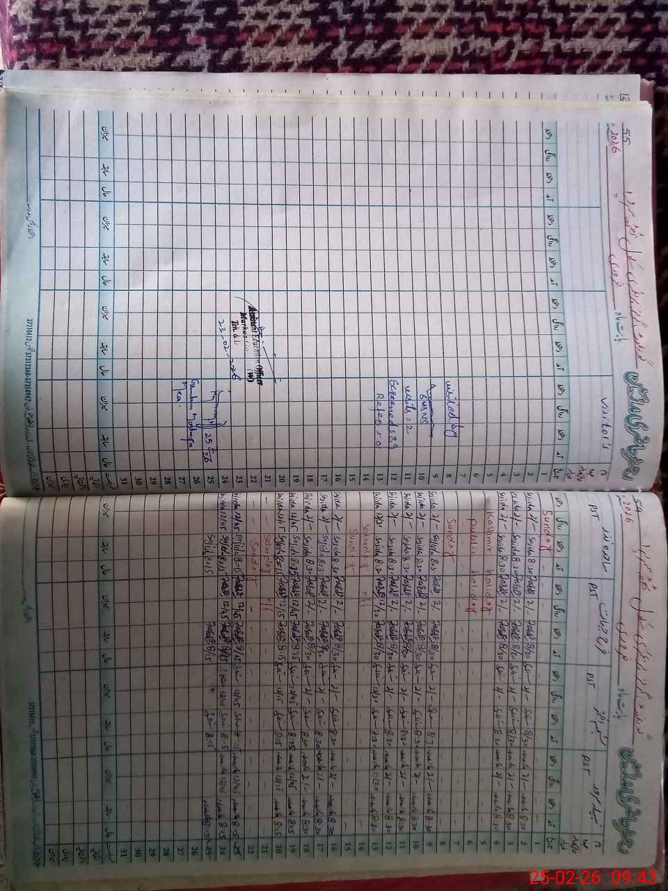 | CNIC | Full Name | Designation | R/C | Absence During Last Calender Month |