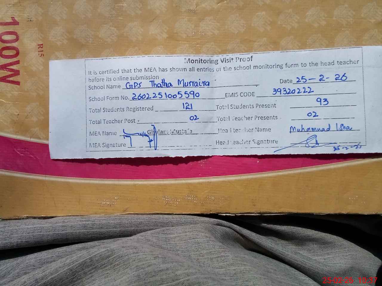 | EMIS Code: 39320222 | Name of School: GPS THATHA MUSRAIRA | |||