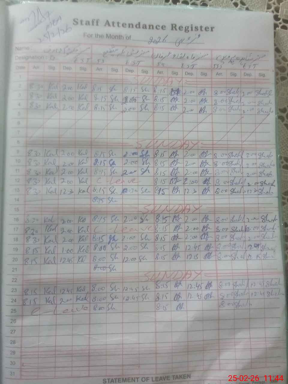 | 31**** | Ru**** Ta**** | SST Science | Regular | 0 | 0 | 0 | 0 | 0 | 0 | 0 | 0 | 0 | Casual |