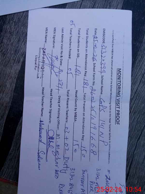 | Monitoring Date: 25-02-2026 | Start Time: 25-02-2026 10:16 AM | End Time: 25-02-2026 10:55 AM | Name of MEA: Za**** Iq**** | |