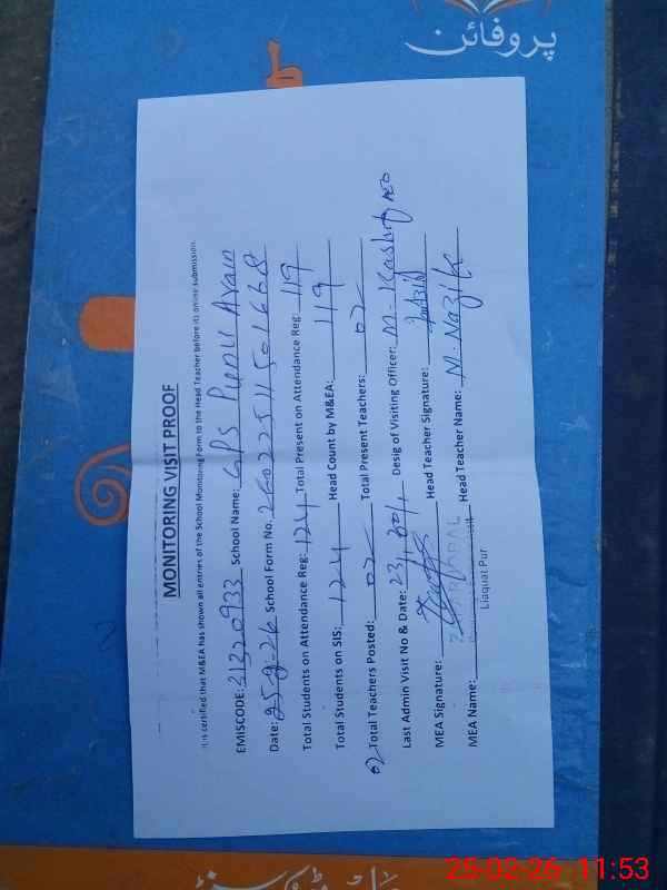 | EMIS Code: 31320933 | Name of School: GPS PUNU ARAIN | |||