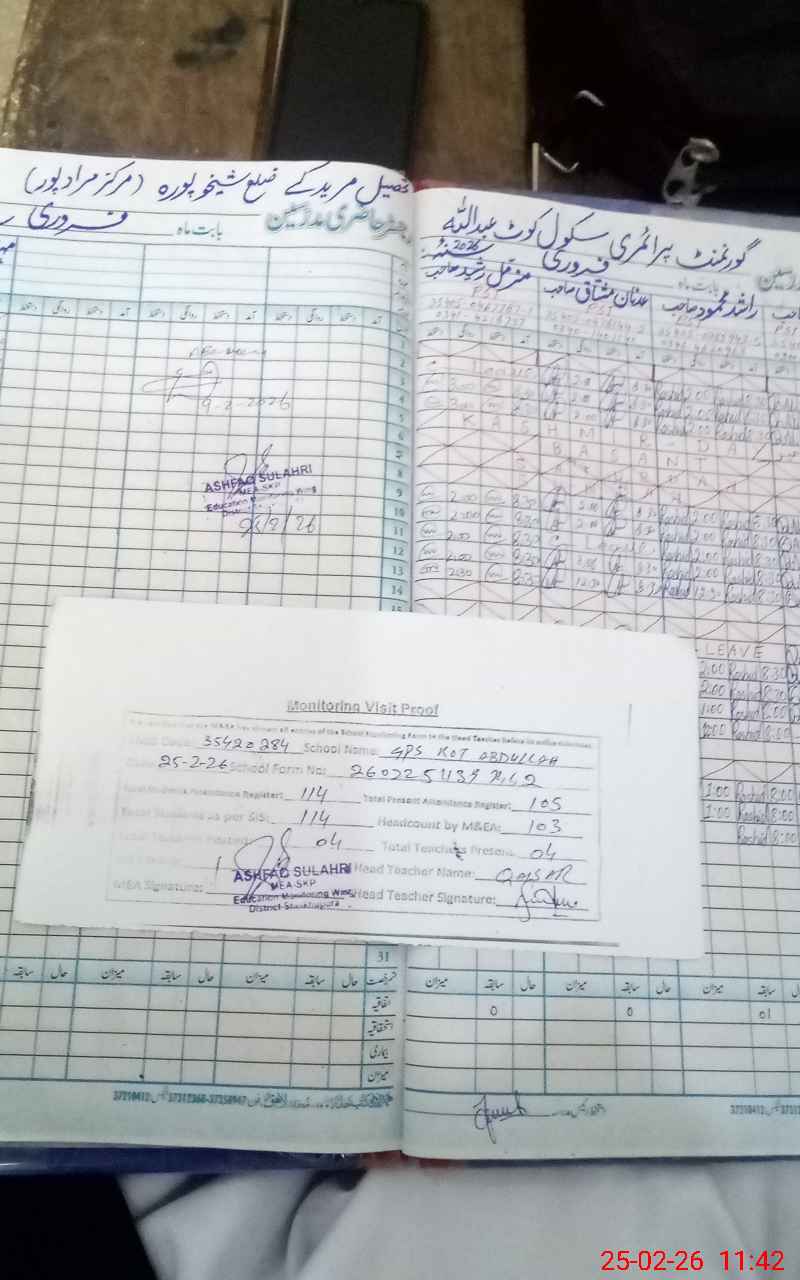 | EMIS Code: 35420284 | Name of School: GPS KOT ABDULLAH | |||