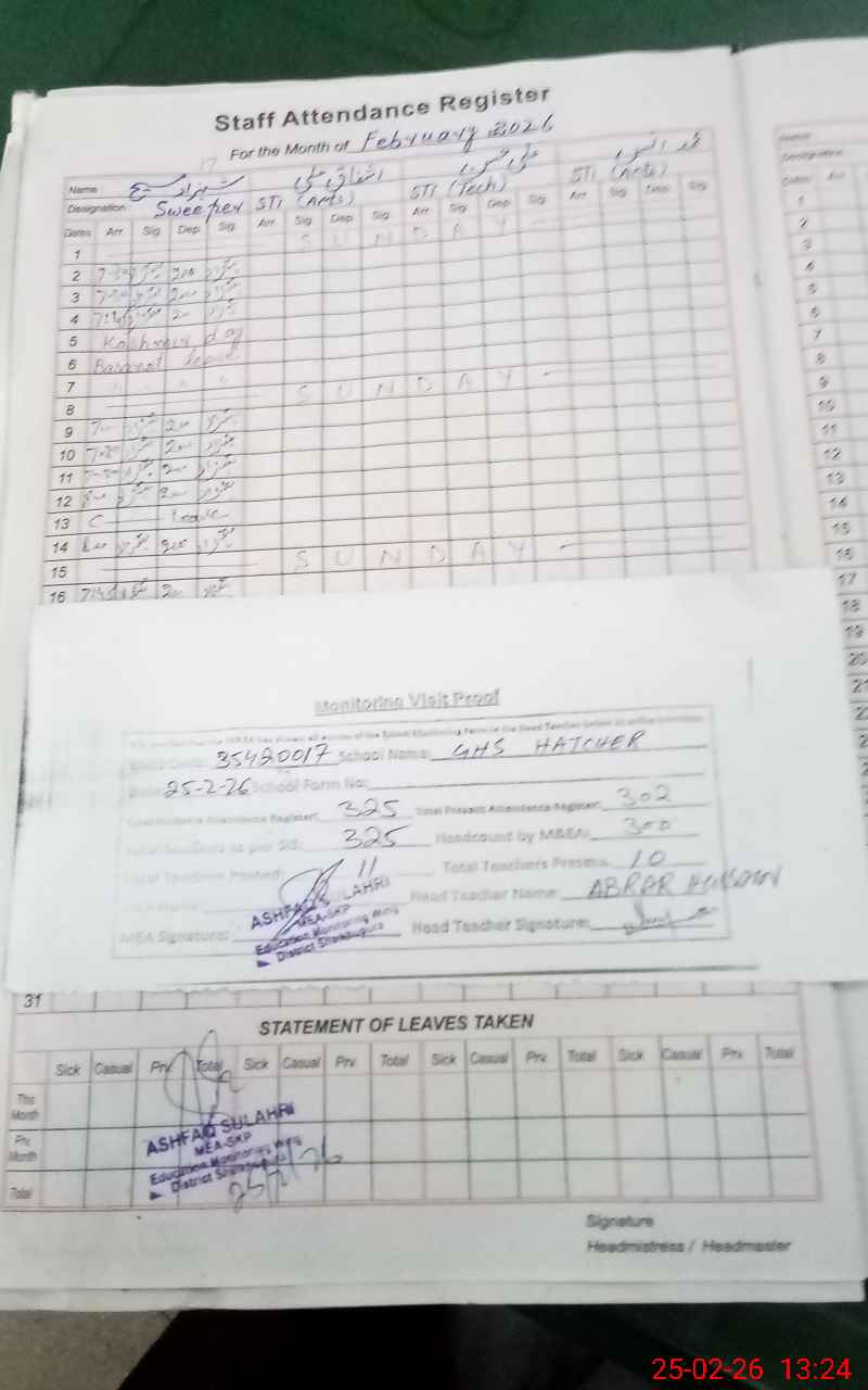 | Attendance Register | Head Teacher | MEA with School | Visit Proof |