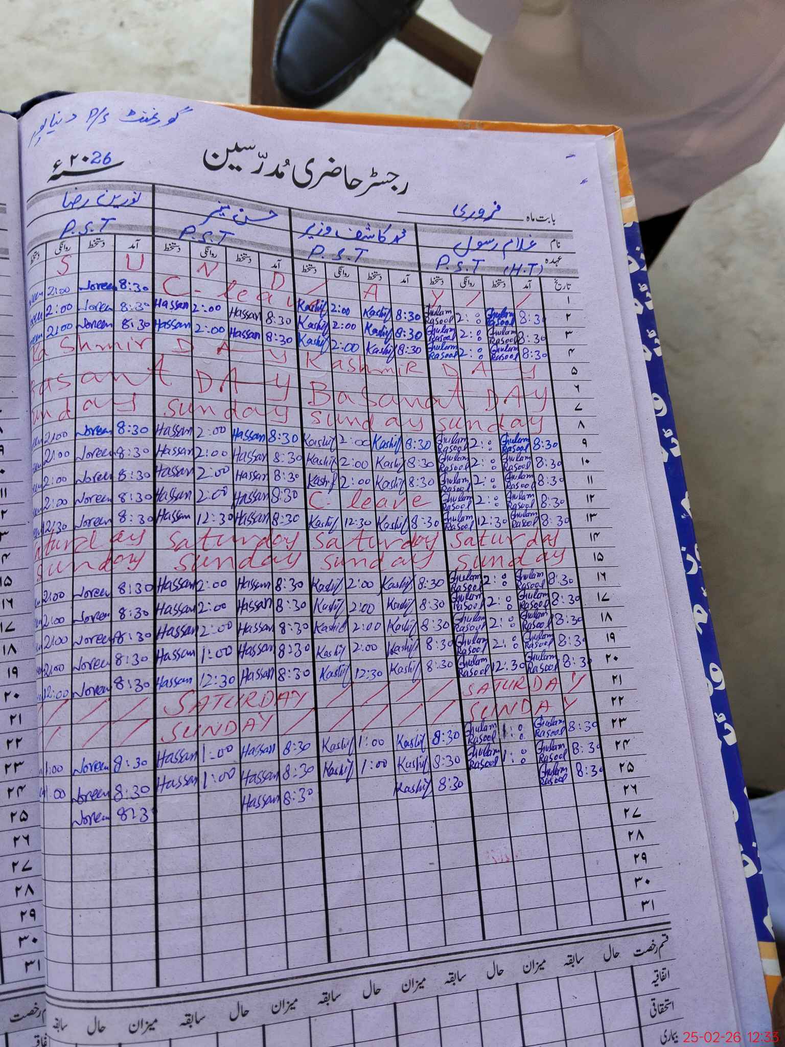 | CNIC | Full Name | Designation | R/C | Absence During Last Calender Month |
