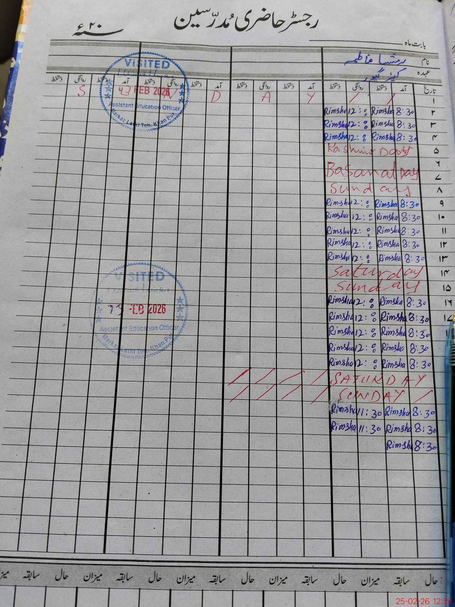 | Attendance Register | Head Teacher | MEA with School | Visit Proof |