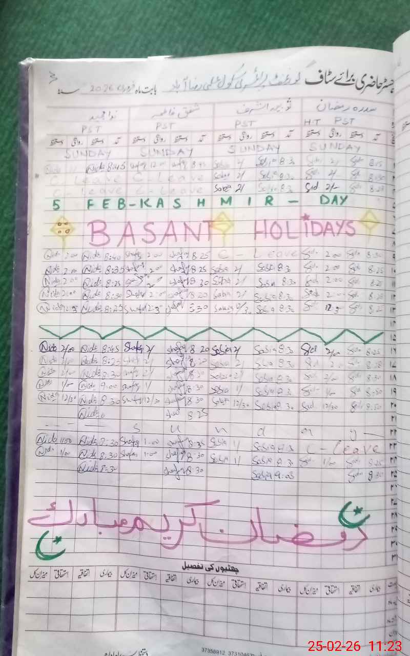 | EMIS Code: 35220162 | Name of School: GPS ALI RAZA ABAD TEHSIL MODEL TOWN | |||