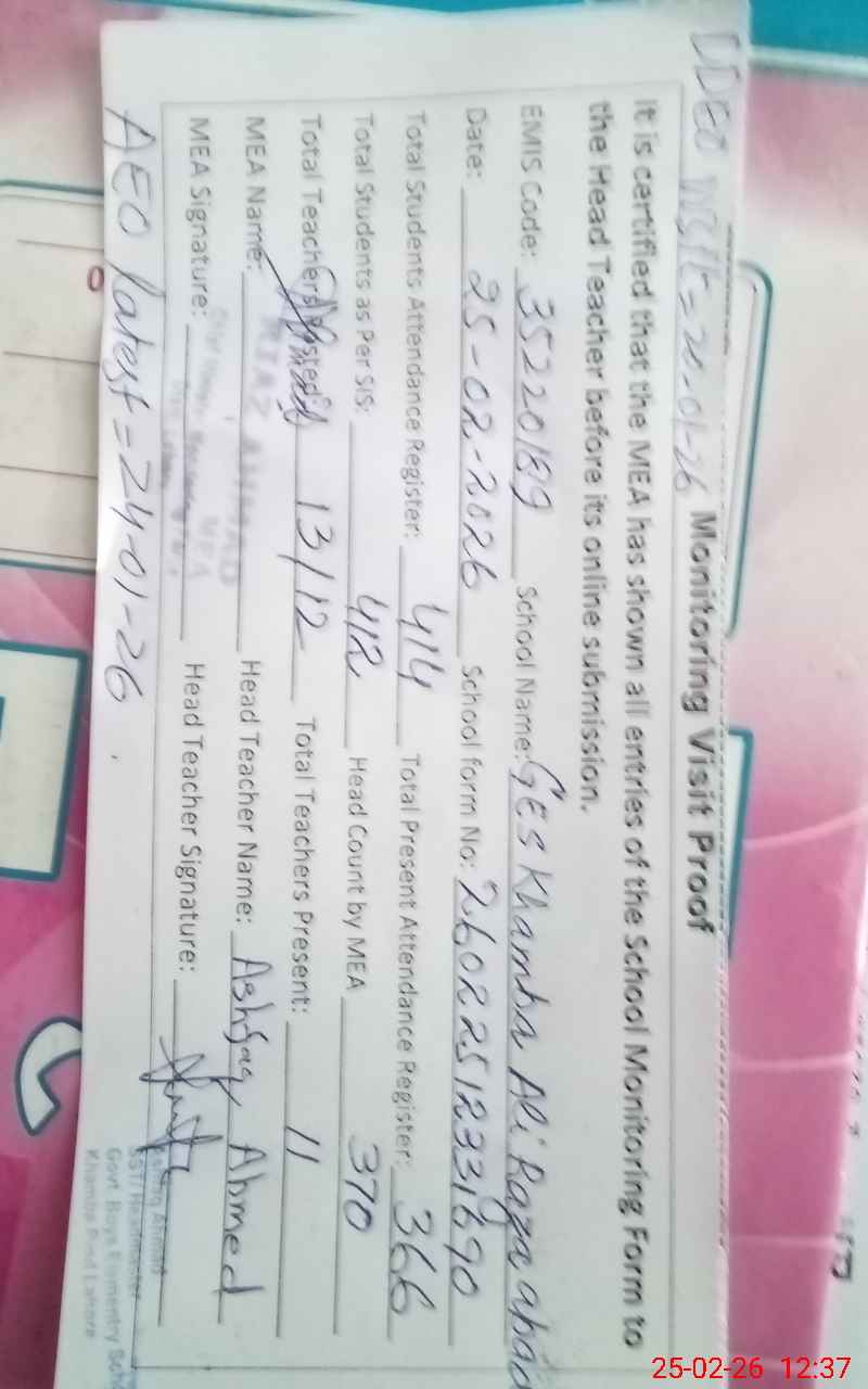 | EMIS Code: 35220189 | Name of School: GES KHAMBA ALI RAZA ABAD (Neshaman-e-Iqbal) | |||