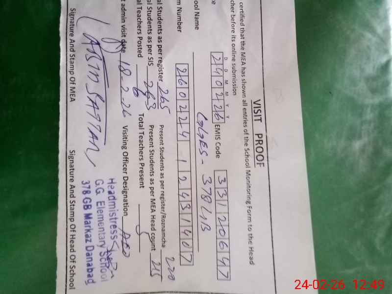 | EMIS Code: 33120647 | Name of School: GGES 378 GB | |||