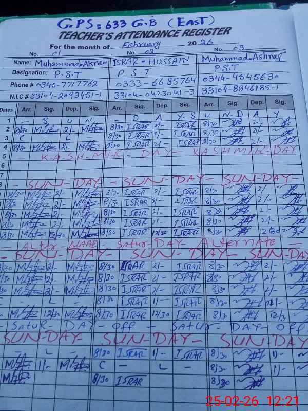 | Name: Mu**** Ak**** Designation: (School Headmaster's/Headmistress's) PST Phone/Cell Number: 03**** |