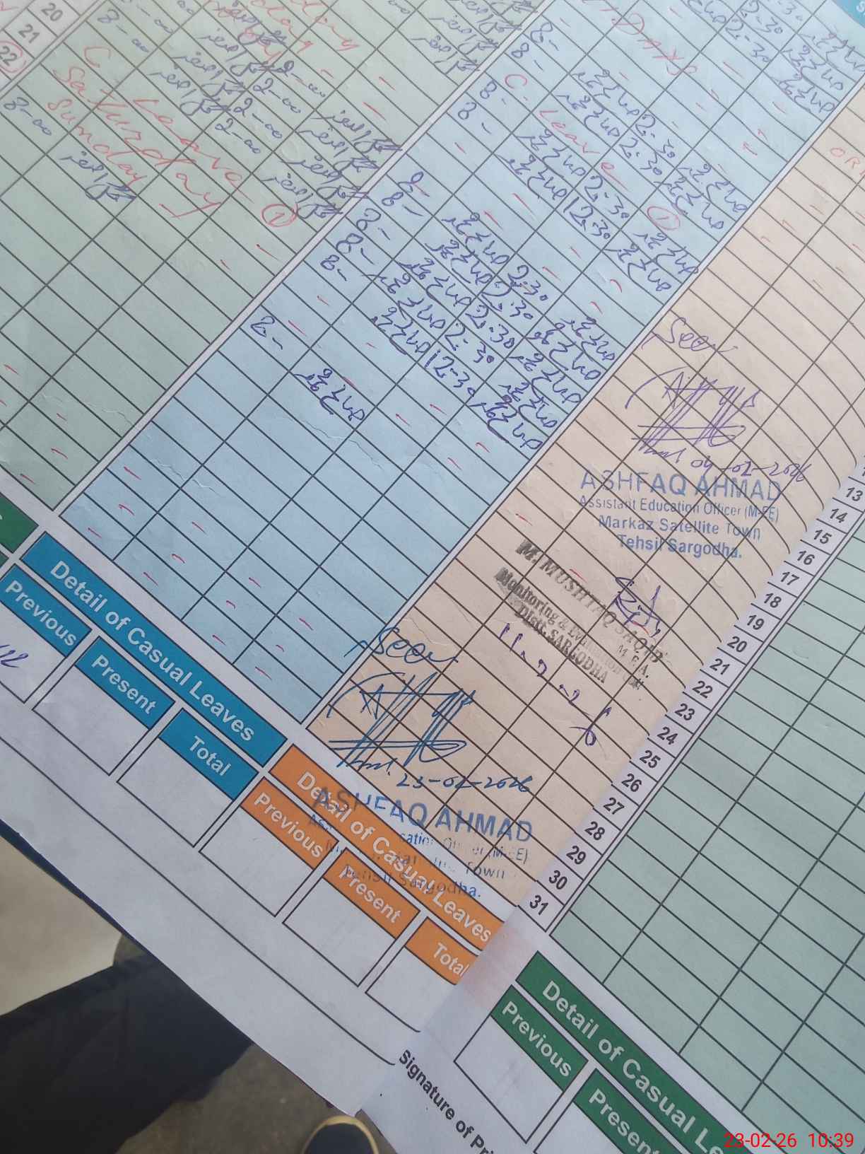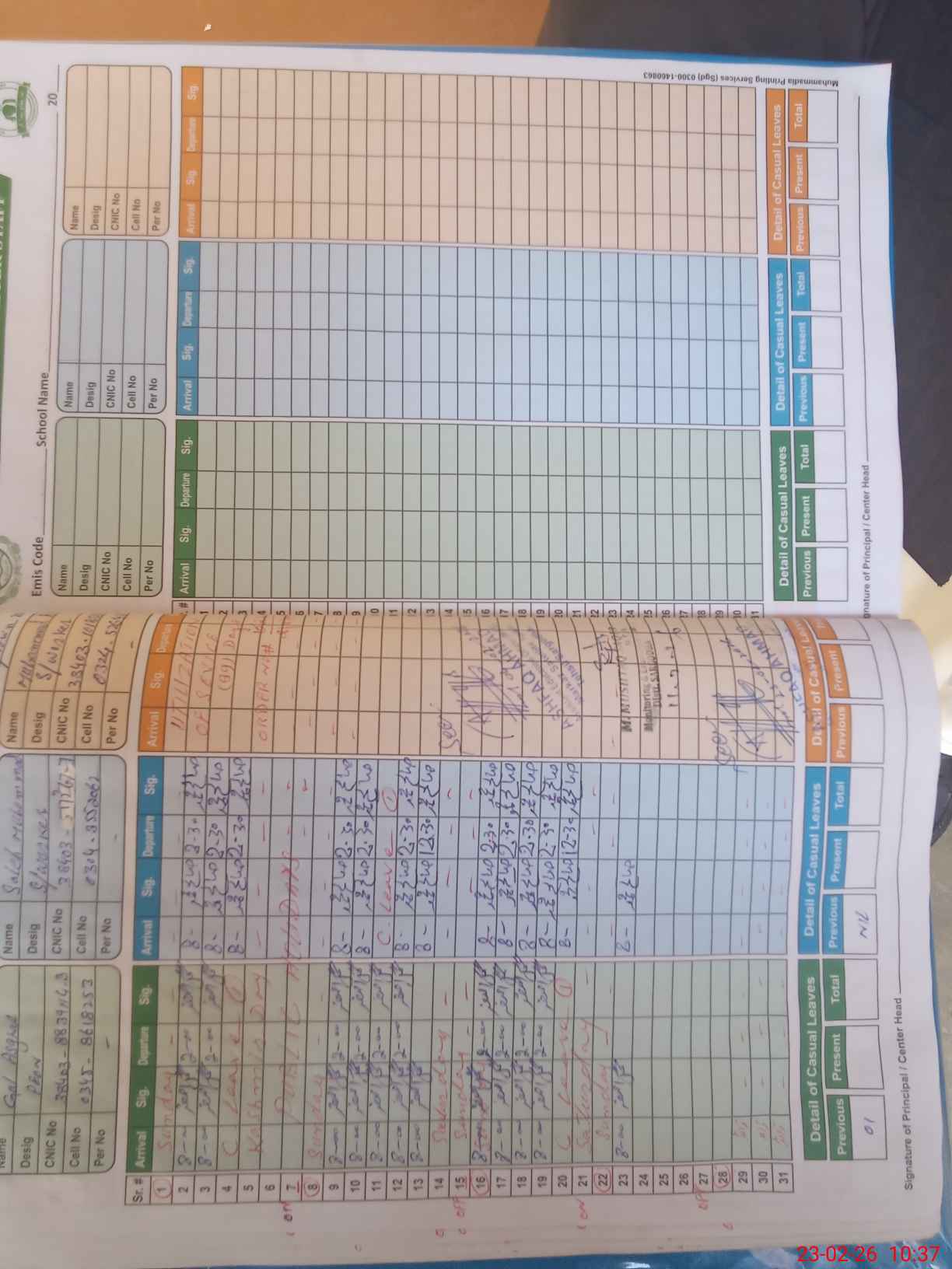 | CNIC | Full Name | Designation | R/C | Absence During Last Calender Month |