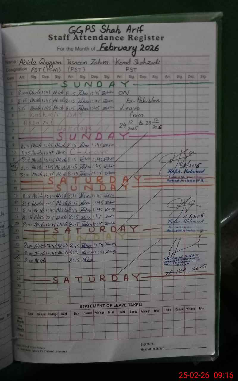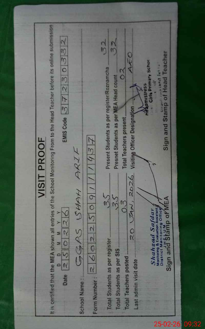 | EMIS Code: 37230332 | Name of School: GGPS SHAH ARIF | |||