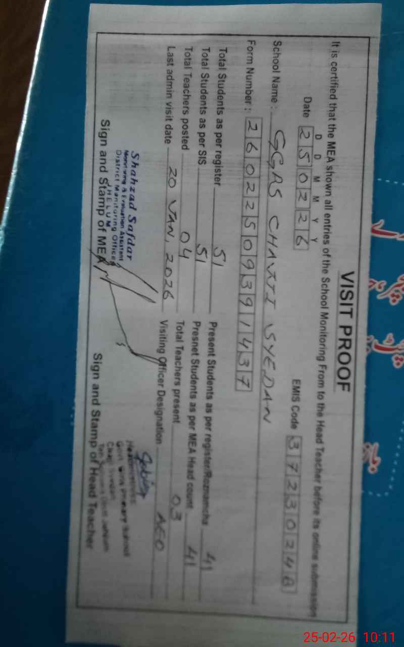 | EMIS Code: 37230248 | Name of School: GGPS CHAJJI SYEDAN | |||
