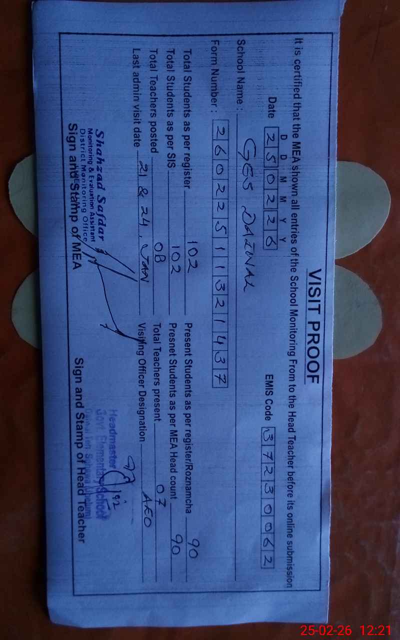 | EMIS Code: 37230062 | Name of School: GES DAIWAL | |||