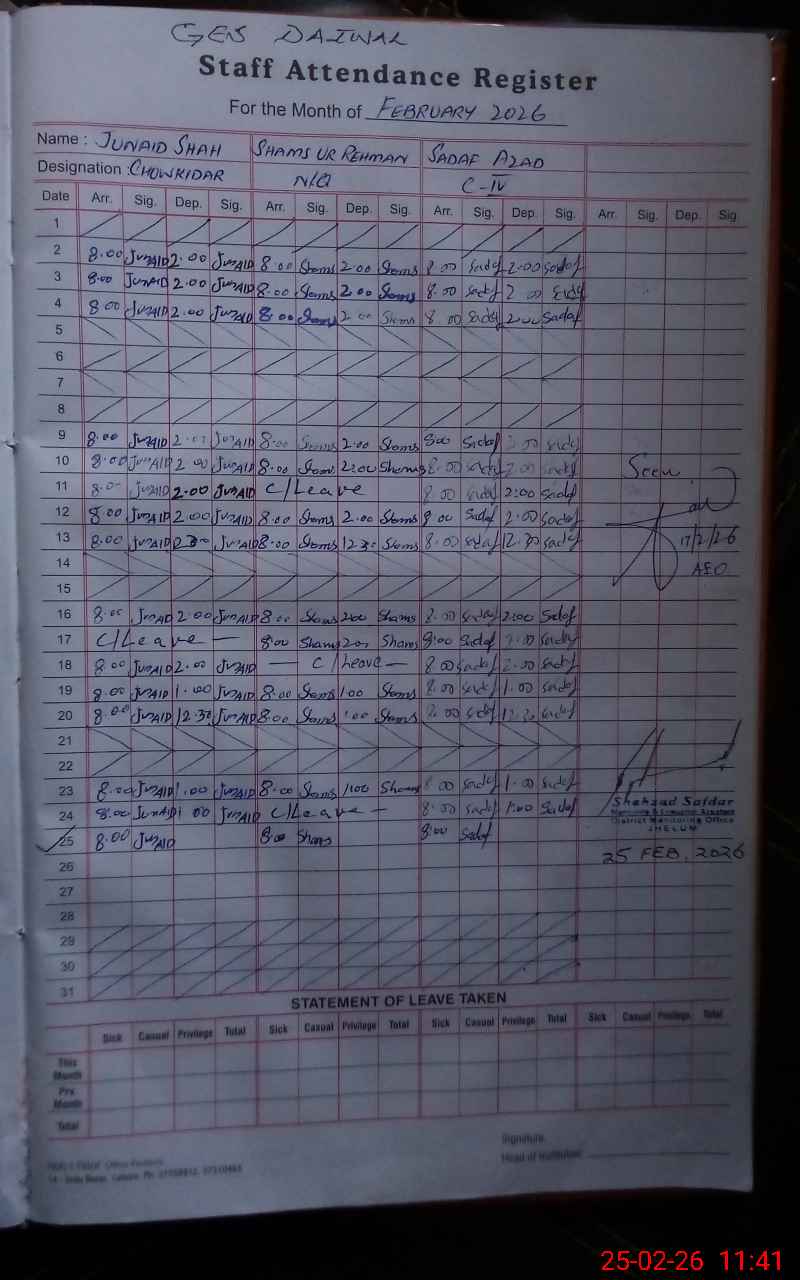 | 37**** | Ab**** Wa**** | PST Arts | Regular | 0 | 11 | 0 | 0 | 0 | 0 | 0 | 0 | 0 | Casual |