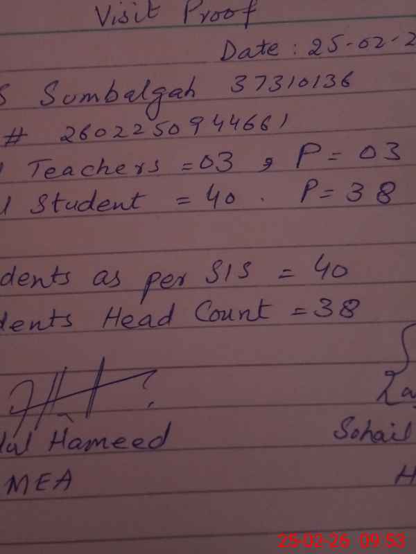 | EMIS Code: 37310136 | Name of School: GPS SUMBAL GAH | |||
