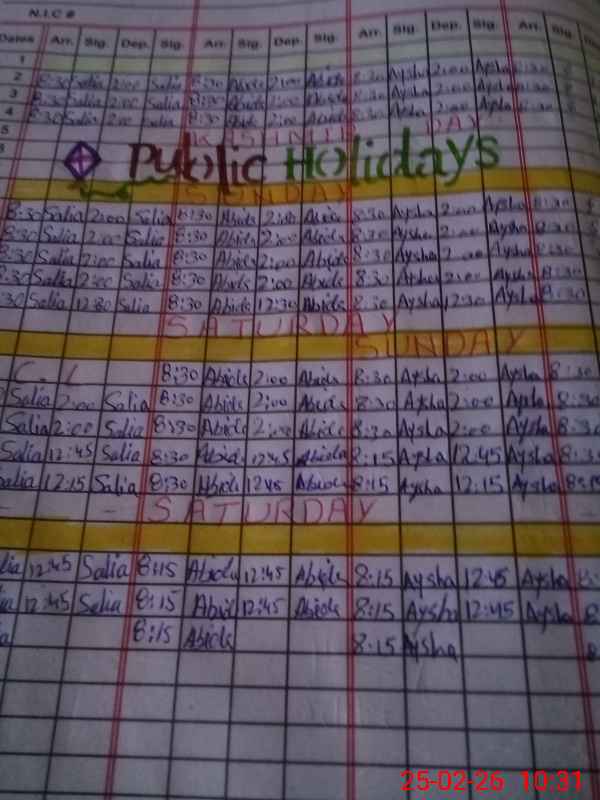 | CNIC | Full Name | Designation | R/C | Absence During Last Calender Month |