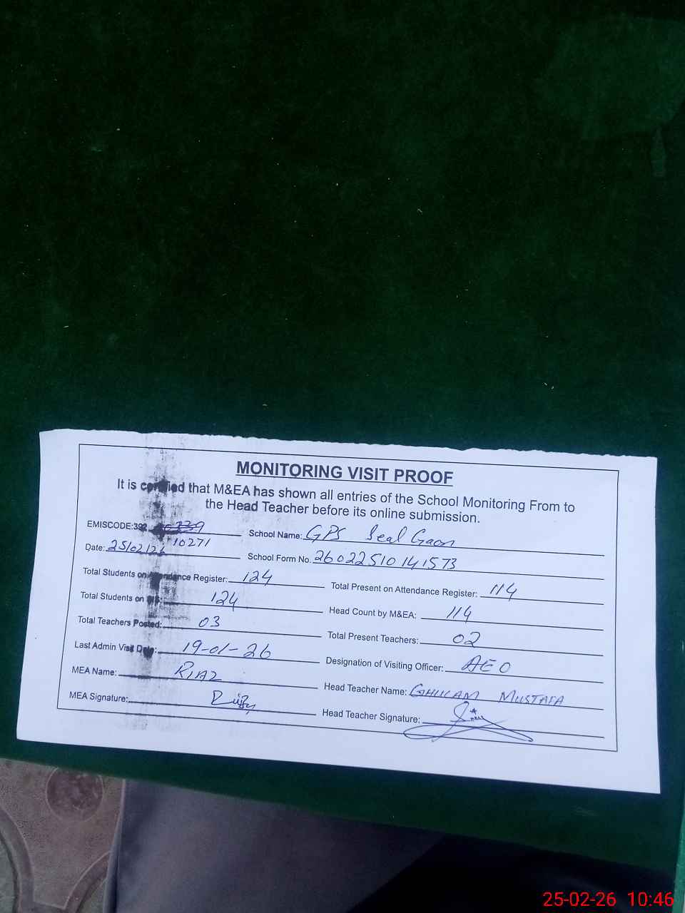 | Name: Gh**** Mu**** Designation: (School Headmaster's/Headmistress's) PST Phone/Cell Number: 03**** |