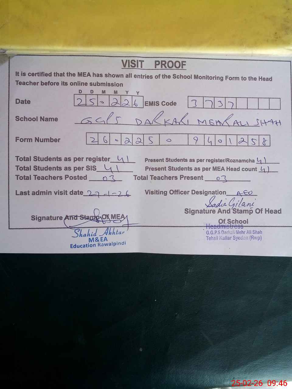 | EMIS Code: 37370374 | Name of School: GGPS MEHR ALI SHAH | |||