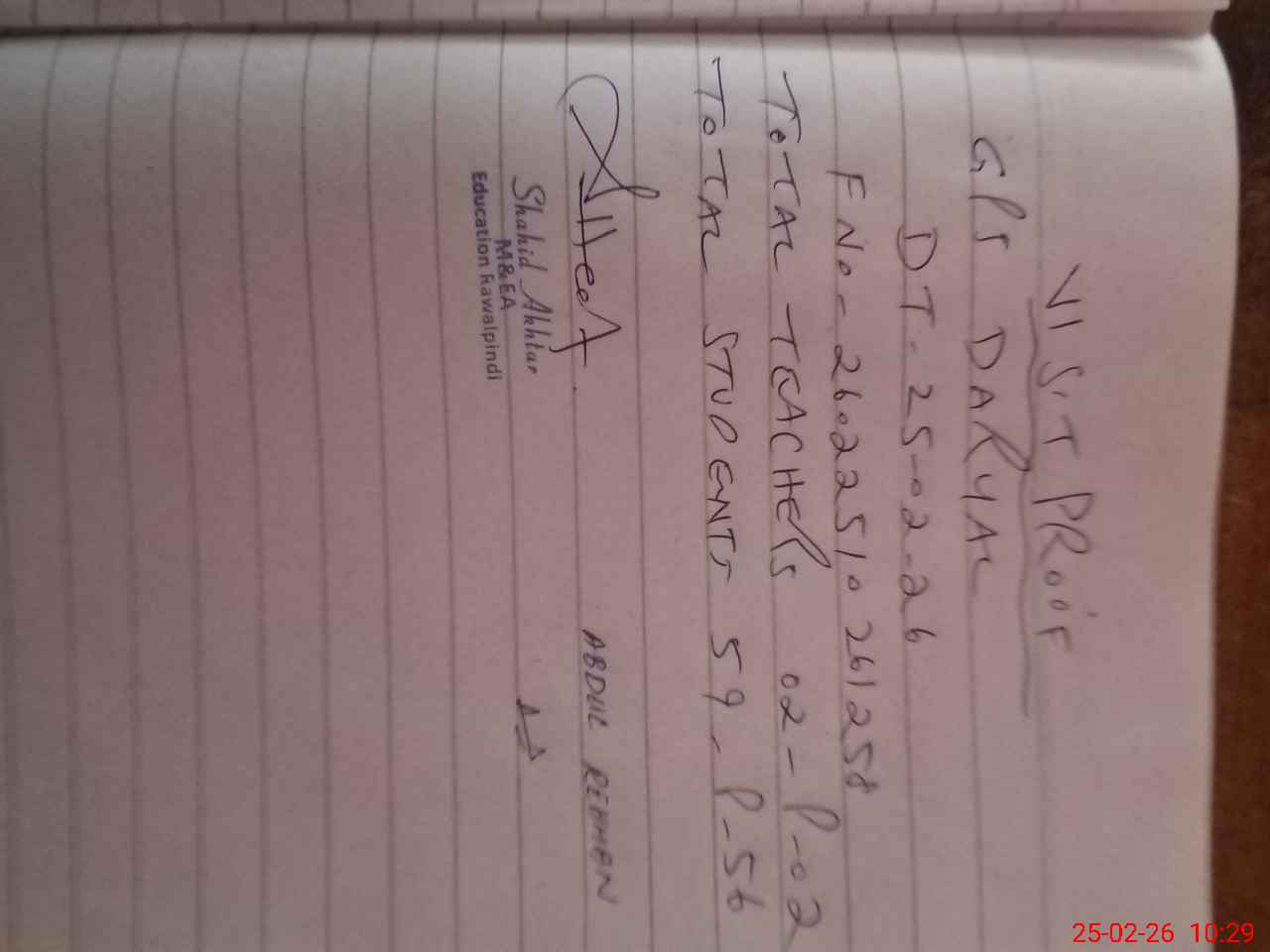 | Certified that this School was Inspected by the Undersigned MEA/DMO Today and the Information Stated Above is as Per Record. | |||||