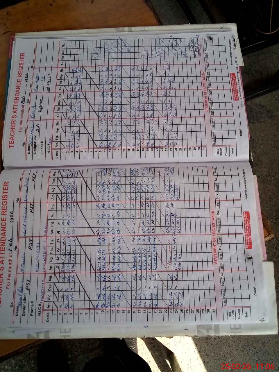 | Name: Ab**** Re**** Designation: (School Headmaster's/Headmistress's) PST Phone/Cell Number: 03**** |