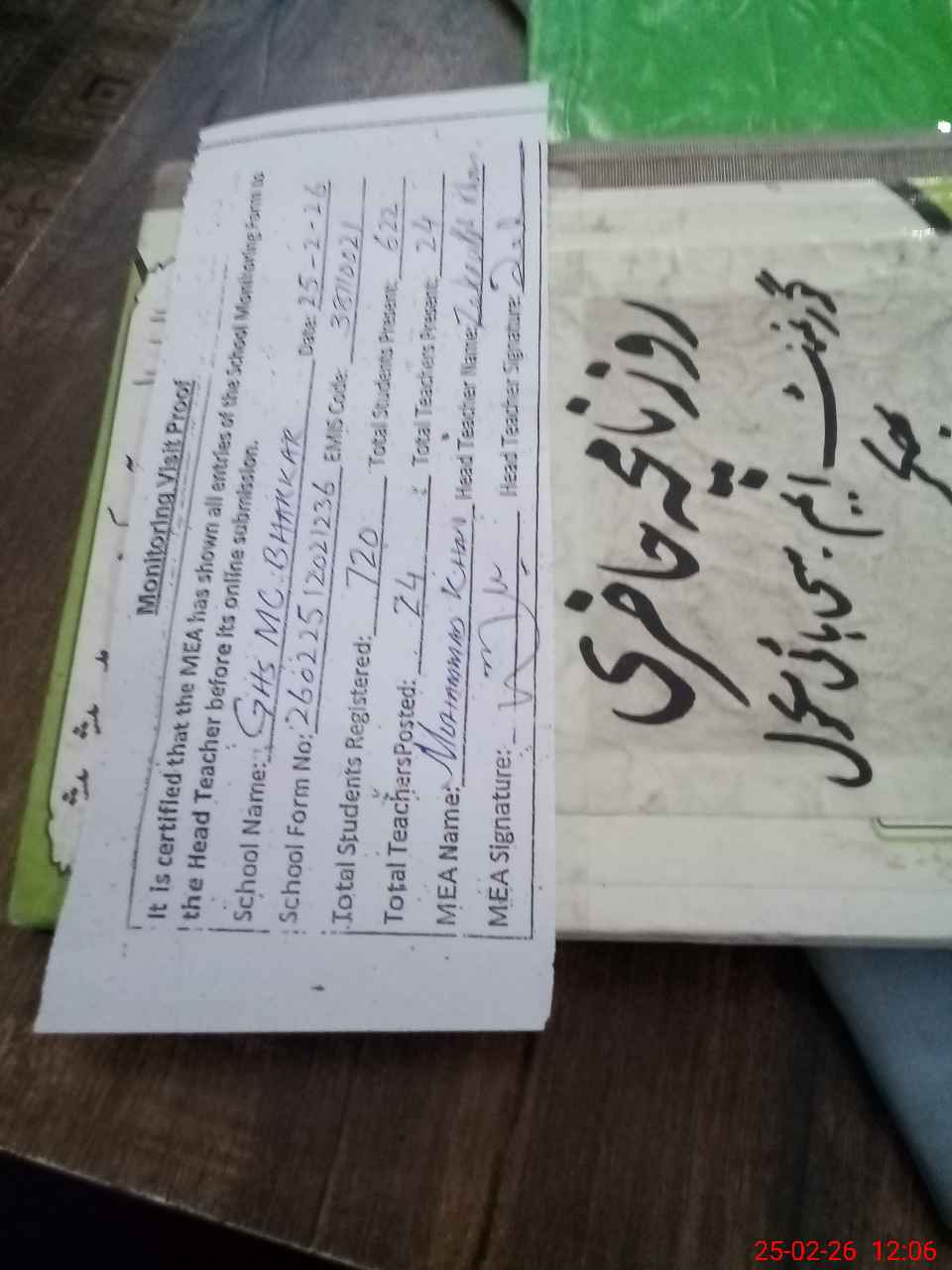 | EMIS Code: 38110021 | Name of School: GHS MC BHAKKAR MOHALLA NAWAB KHAN | |||