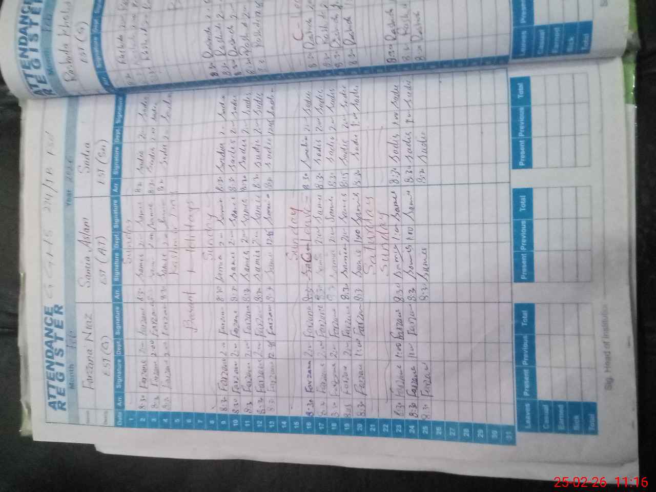 | Leave | Duty | Absent | Maternity | Medical | Ex- Pak |