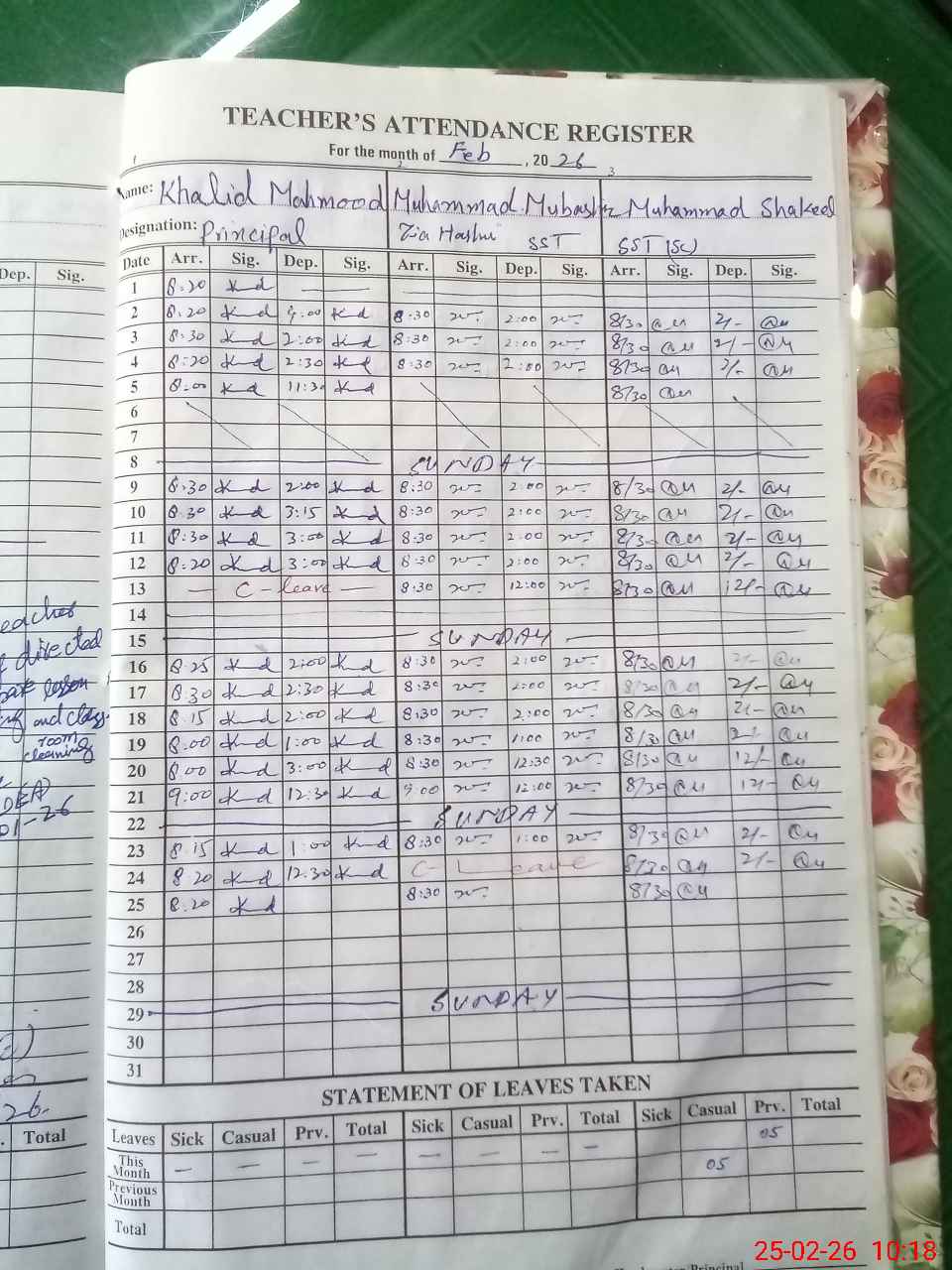 | Name: Ha**** MFa**** Designation: (School Headmaster's/Headmistress's) PRINCIPAL Phone/Cell Number: 03**** |