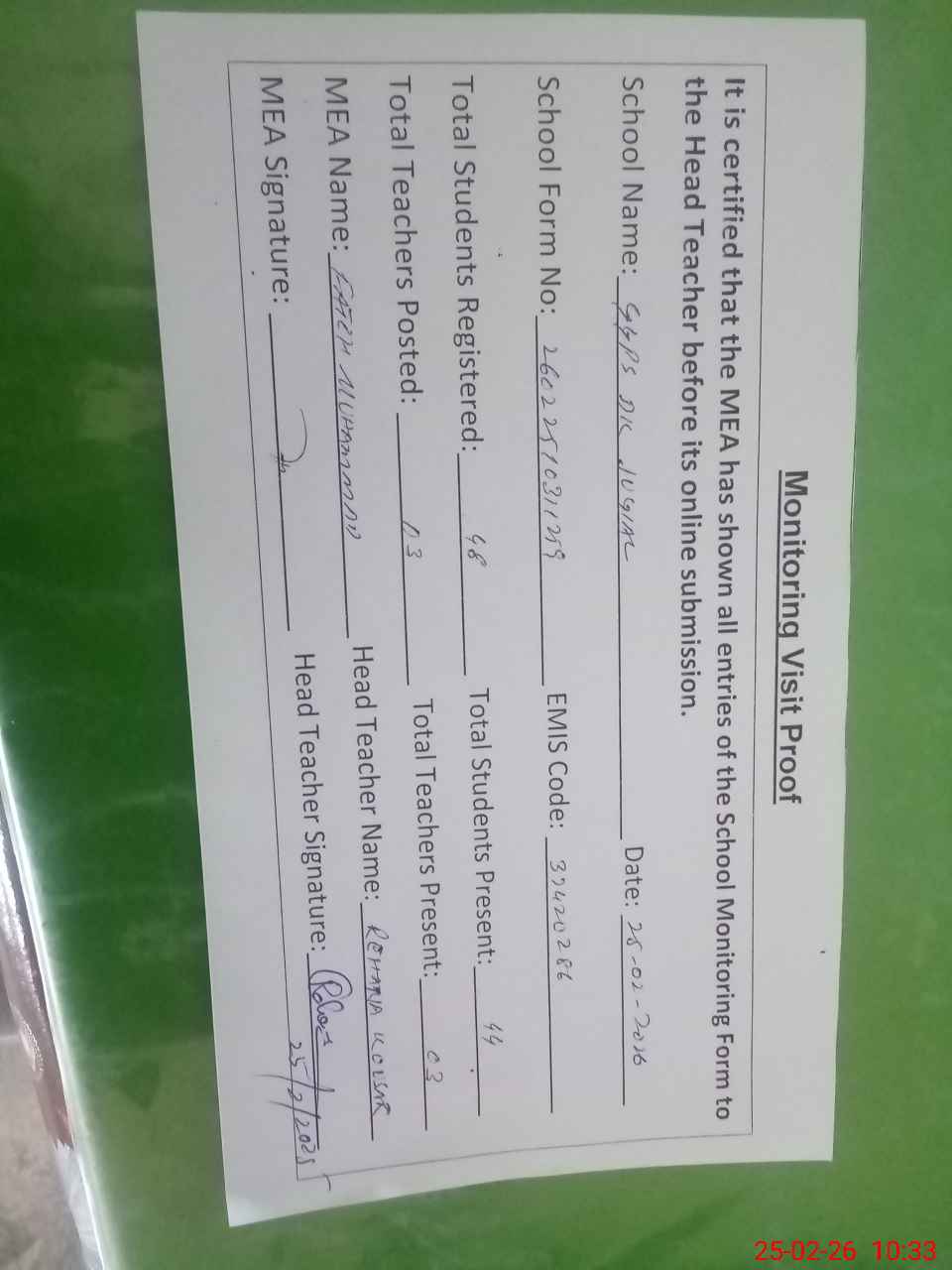 | Certified that this School was Inspected by the Undersigned MEA/DMO Today and the Information Stated Above is as Per Record. | |||||