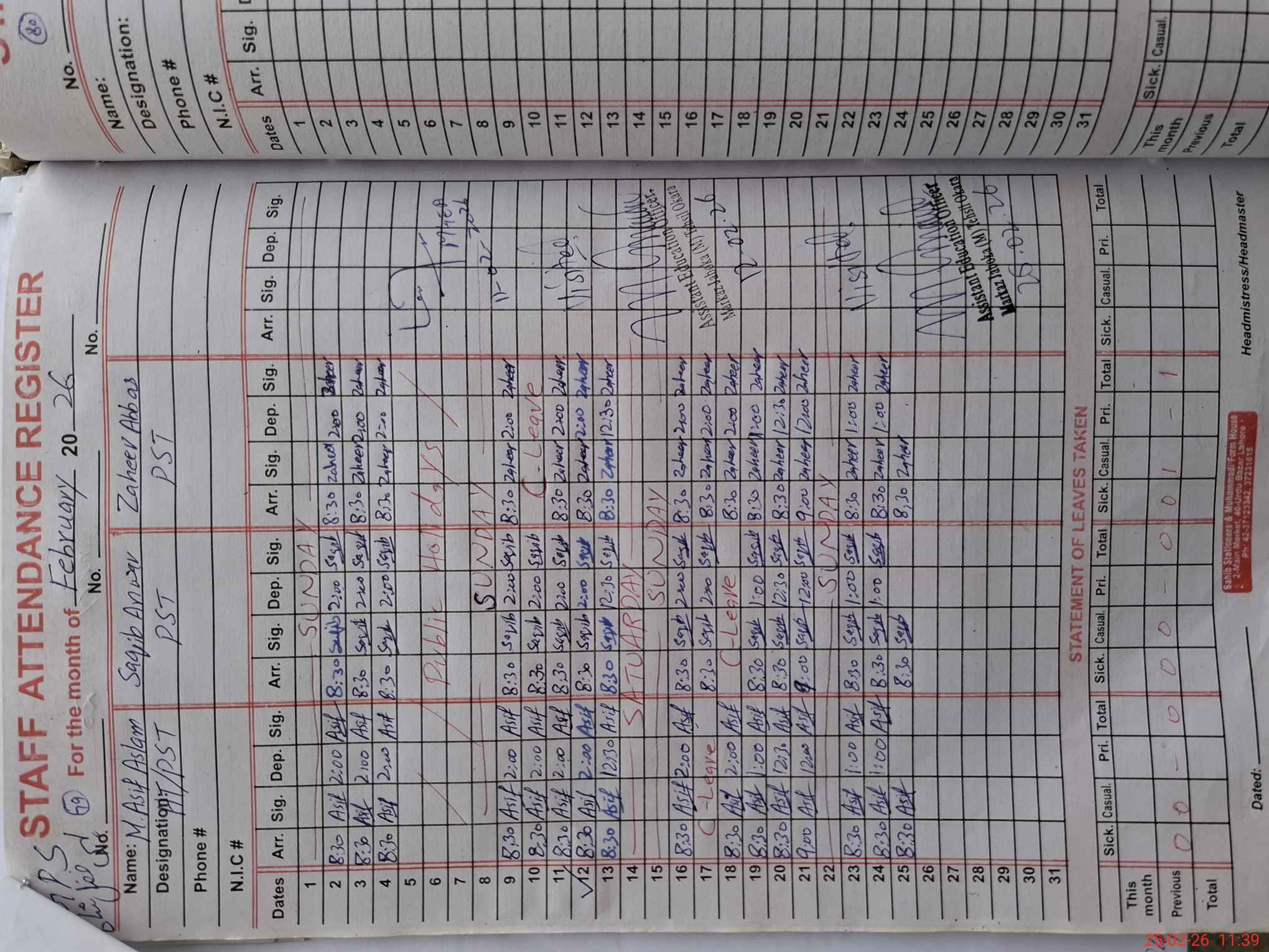 | Name: Mu**** As**** Designation: (School Headmaster's/Headmistress's) PST Phone/Cell Number: 03**** |
