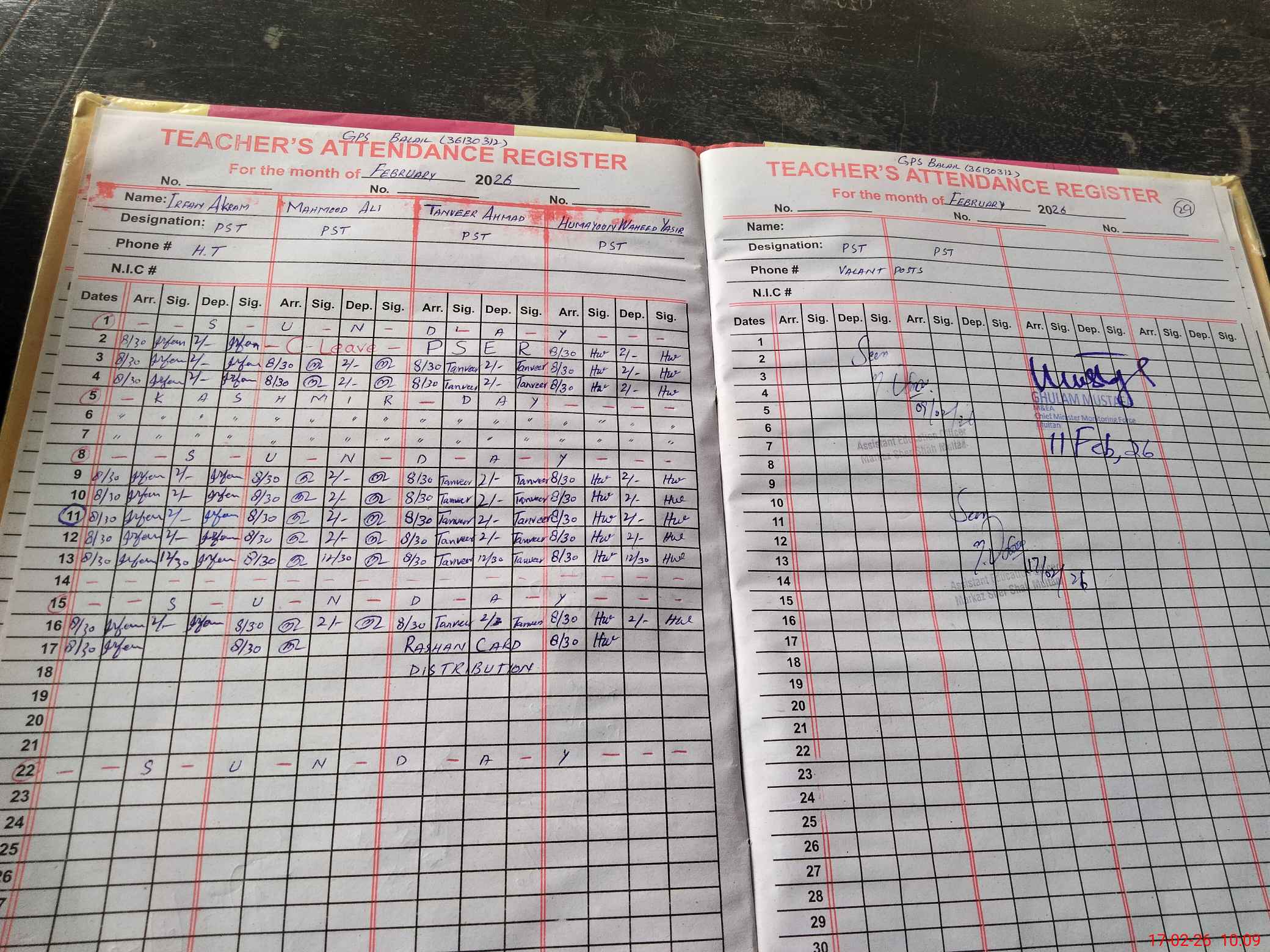 | Name: Ir**** Ak**** Designation: (School Headmaster's/Headmistress's) PST/ Phone/Cell Number: 03**** |