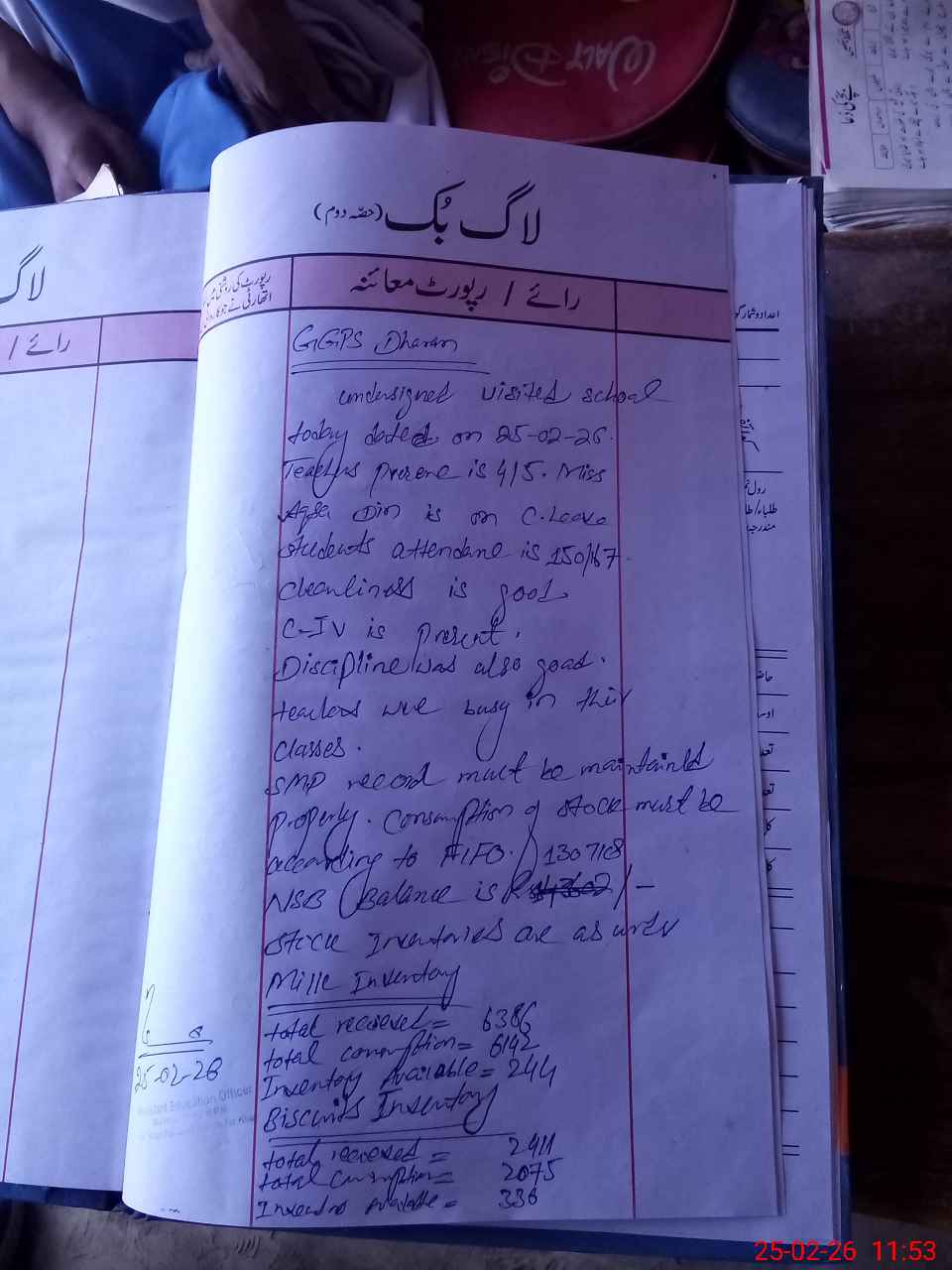 | Certified that this School was Inspected by the Undersigned MEA/DMO Today and the Information Stated Above is as Per Record. | |||||