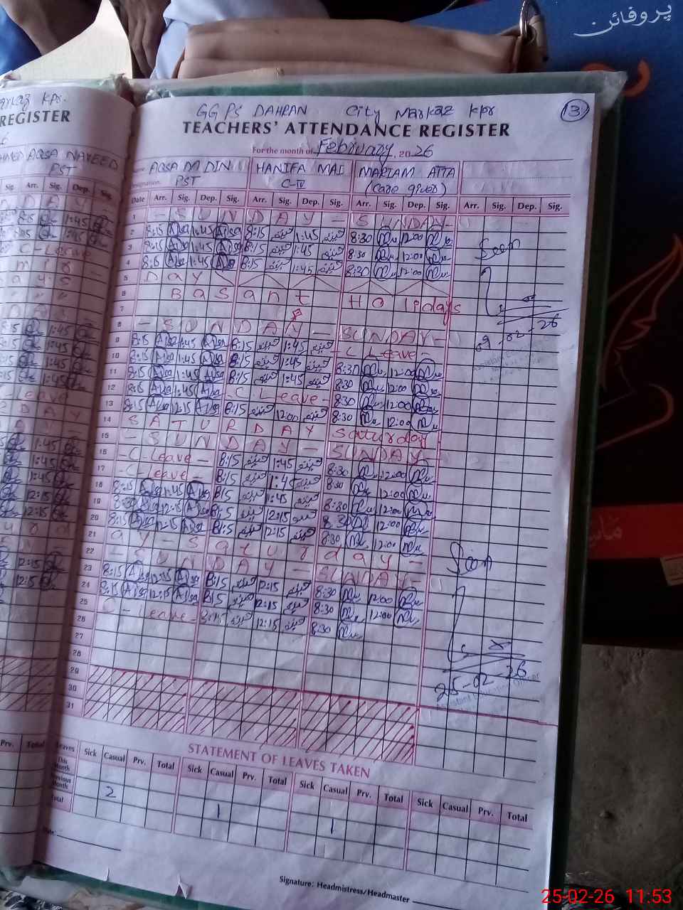 | Name: SA**** NA**** Designation: (School Headmaster's/Headmistress's) PST Phone/Cell Number: 03**** |