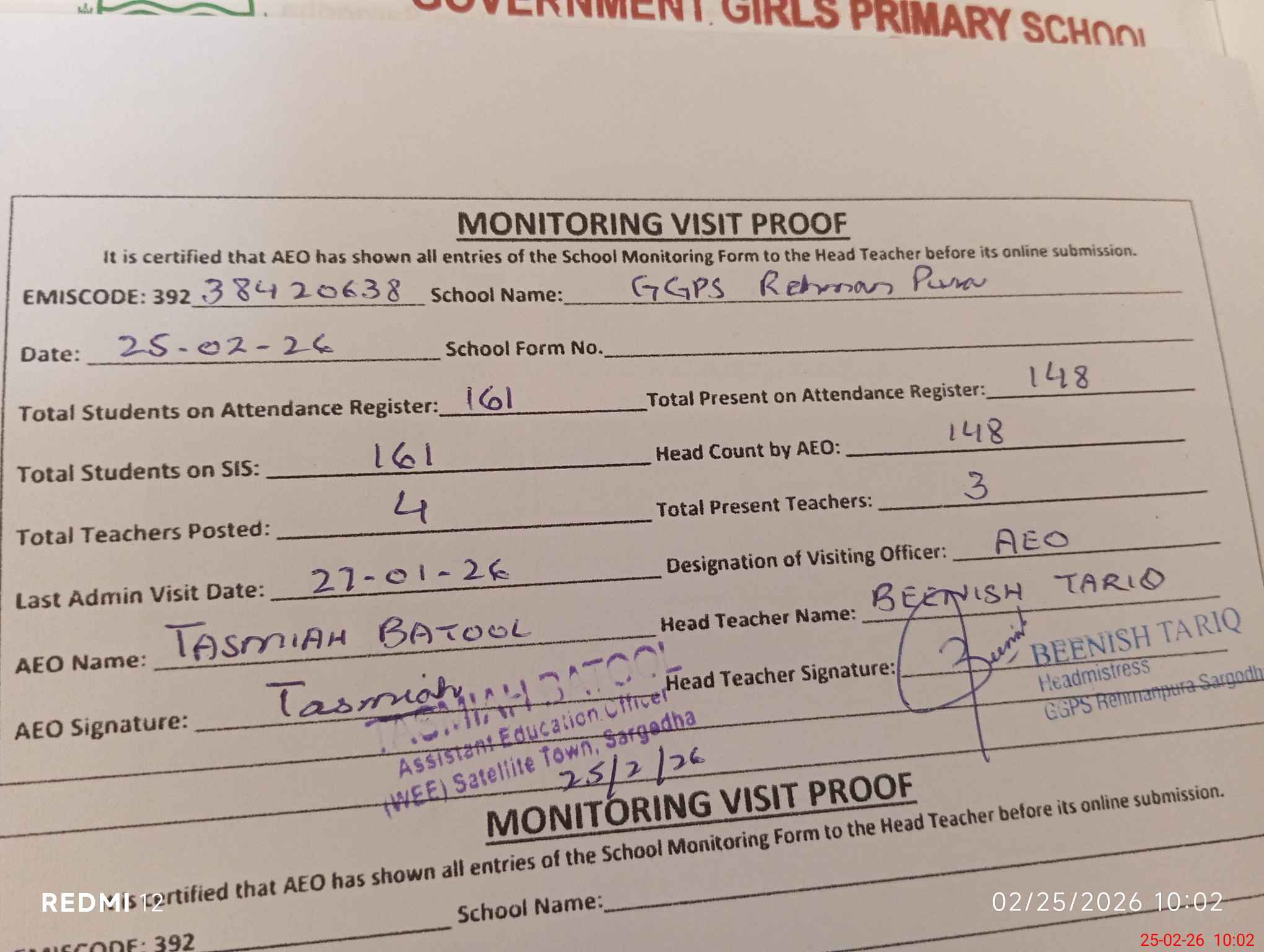 | EMIS Code: 38420638 | Name of School: GGPS RAHMAN PURA | |||