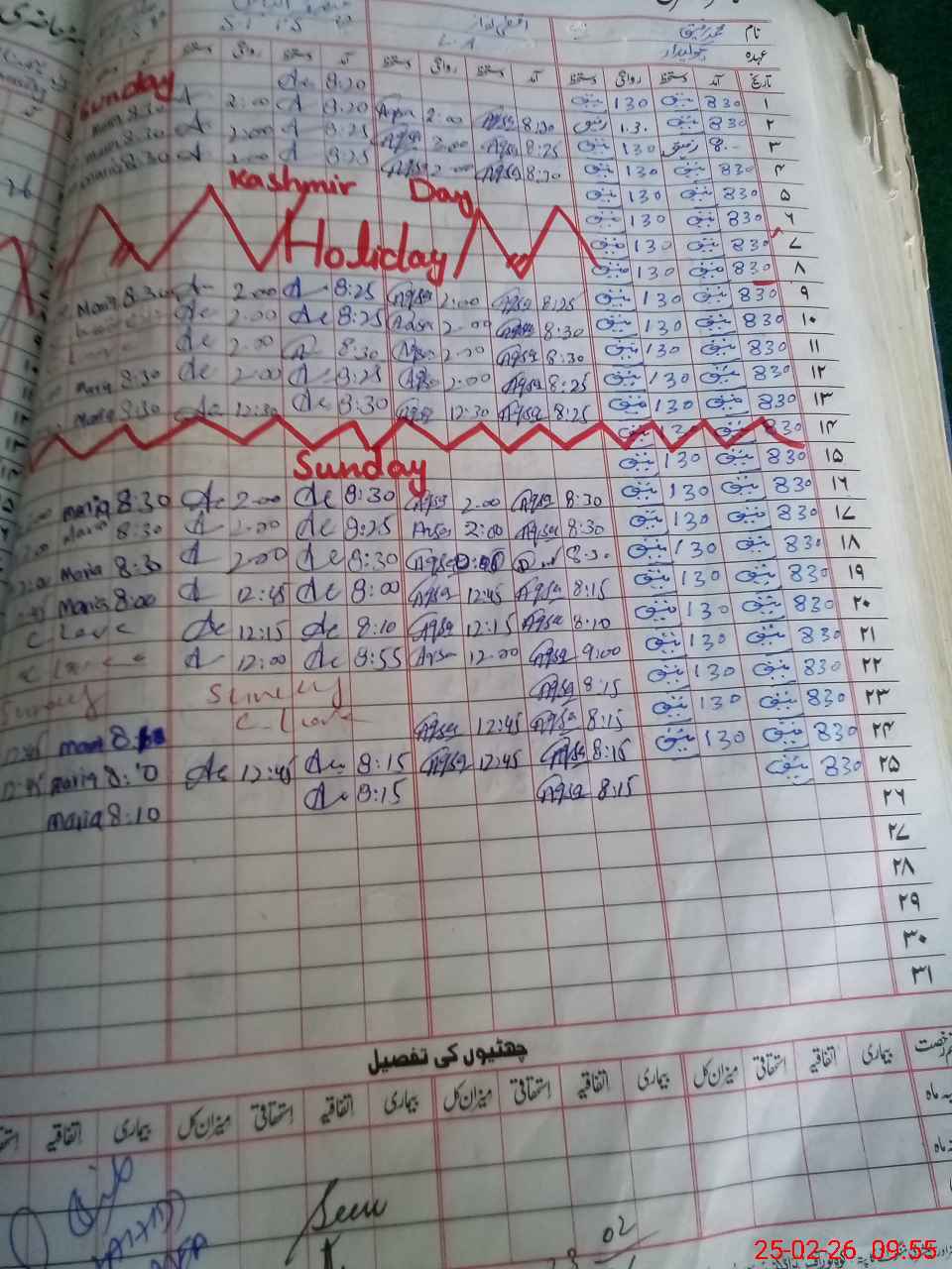 | CNIC | Full Name | Designation | R/C | Absence During Last Calender Month |