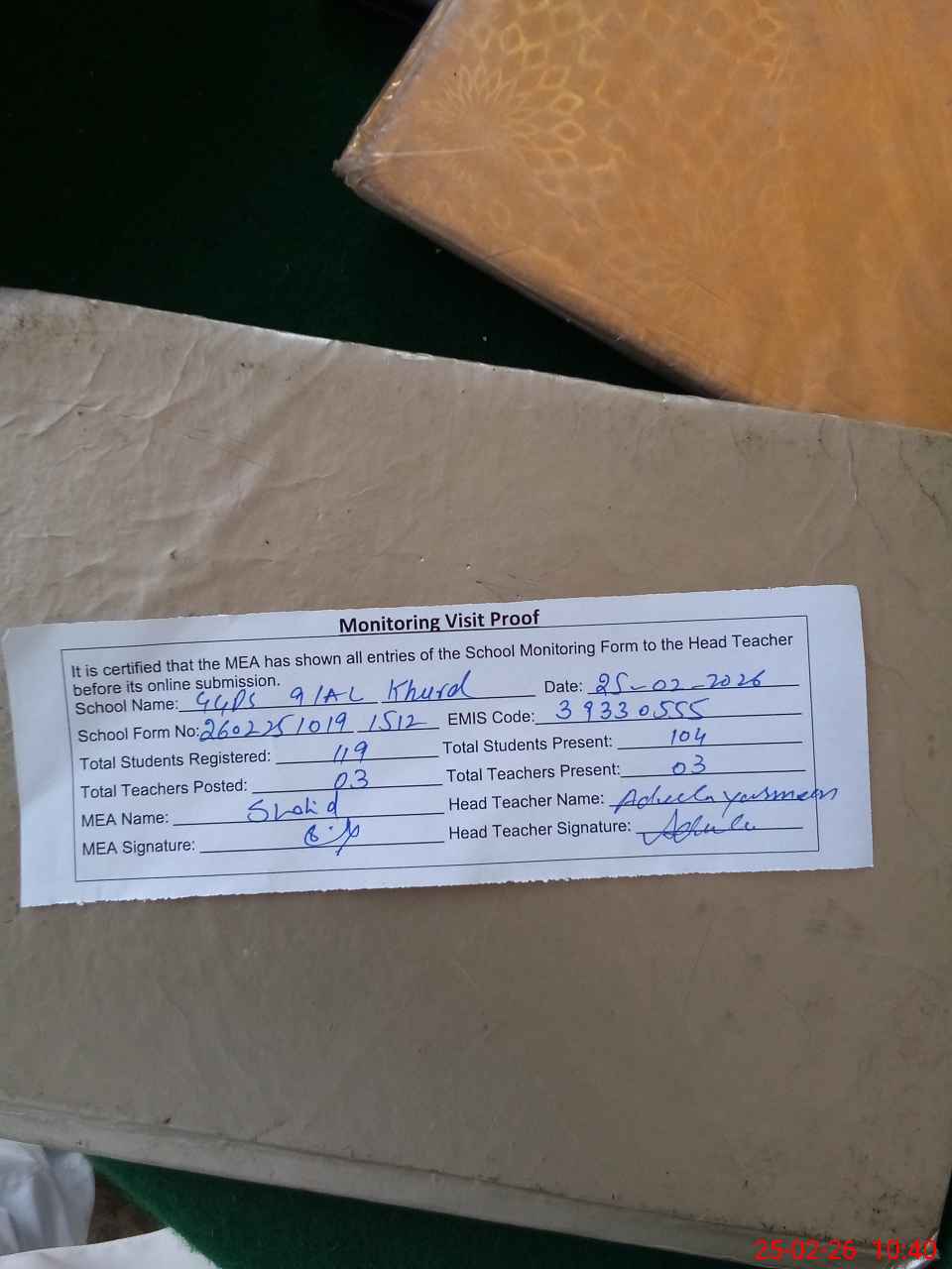 | EMIS Code: 39330555 | Name of School: GGPS 9-1AL KHURD | |||