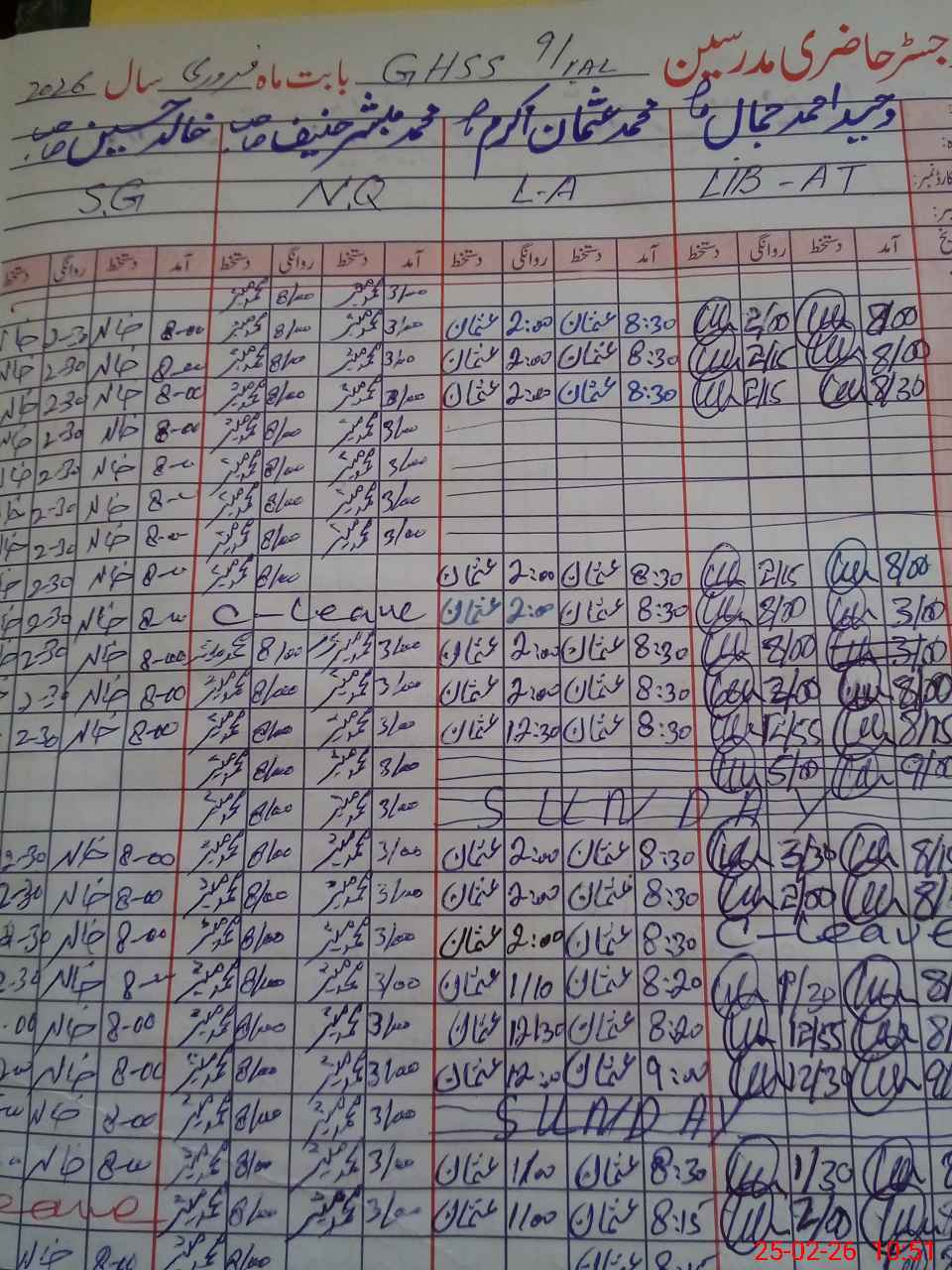 | CNIC | Full Name | Designation | R/C | Absence During Last Calender Month |