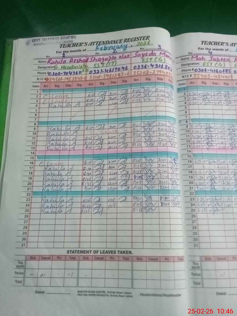 | Name: Ra**** Ar**** Designation: (School Headmaster's/Headmistress's) Senior Head Mistress Phone/Cell Number: 03**** |