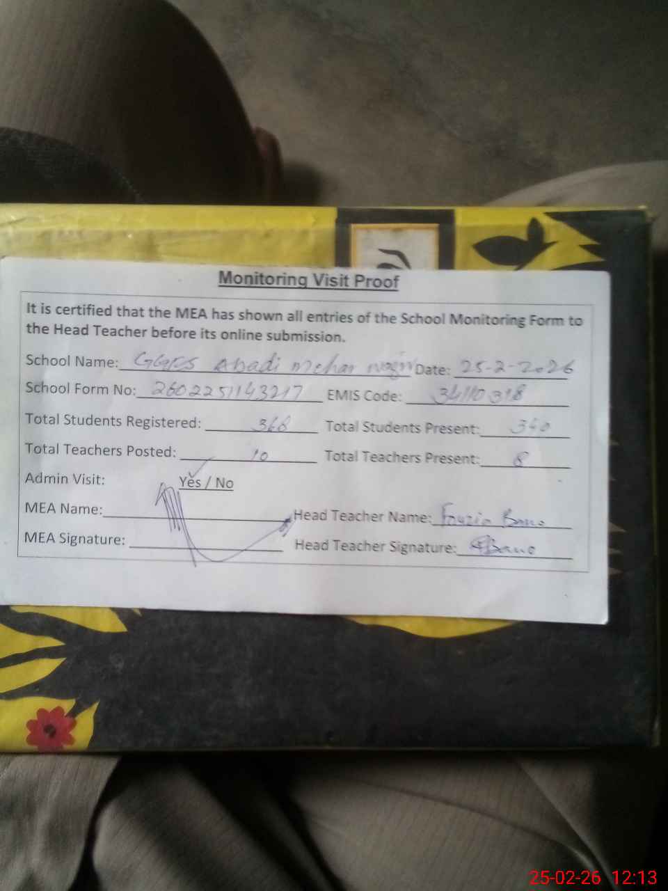 | EMIS Code: 34110318 | Name of School: GGES ABADI MEHR WAZIR | |||