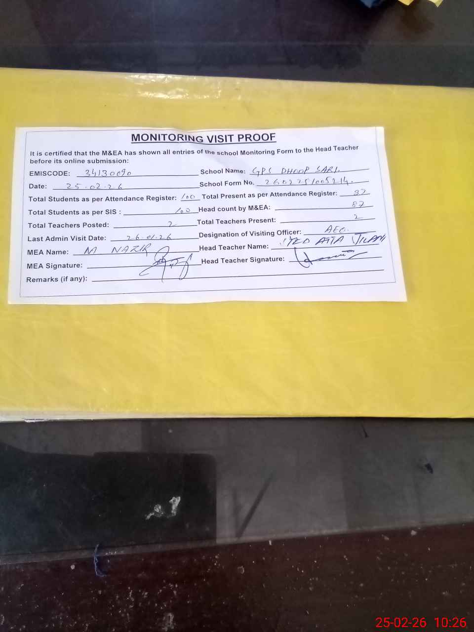 | EMIS Code: 34130090 | Name of School: GPS DHUP SARI | |||